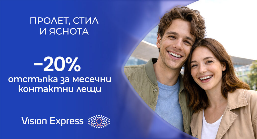 Промоционалната акция ще се проведе в периода от 01.04.2026 до 30.04.2026 включително, в оптиките на Vision Express в България. Списъкът на оптиките, както и правилата на промоцията са достъпни на страница: http://www.visionexpress-bg.com/
