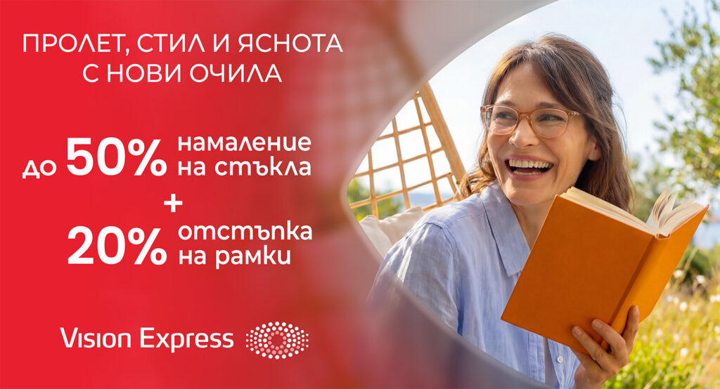 Промоционалната акция ще се проведе в периода от 01.04.2026 до 30.04.2026 включително, в оптиките на Vision Express в България. Списъкът на оптиките е достъпен на страница: http://www.visionexpress-bg.com/